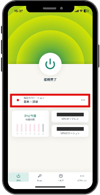 - 国(サーバー)を選択して接続完了!