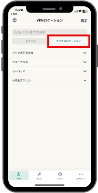 ②検索欄から検索するか、下に表示されるロケーションを選択してサーバーをタップする