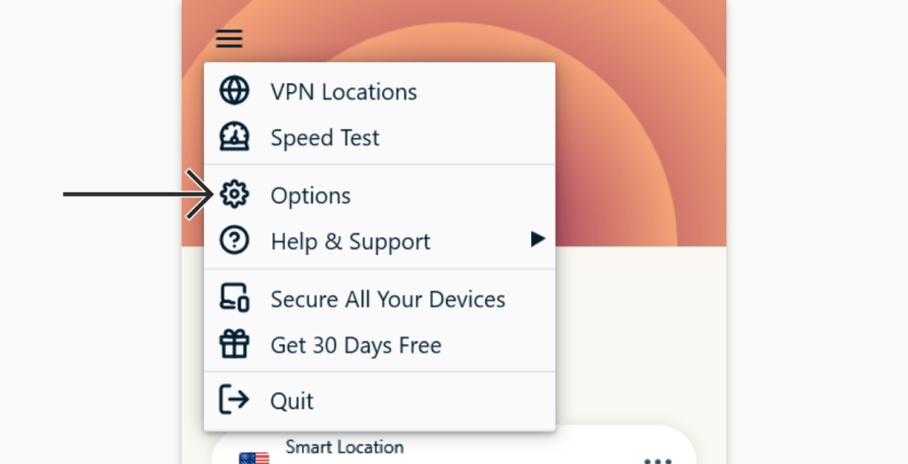 - ExpressVPN Androidアプリで、オプションをタップ