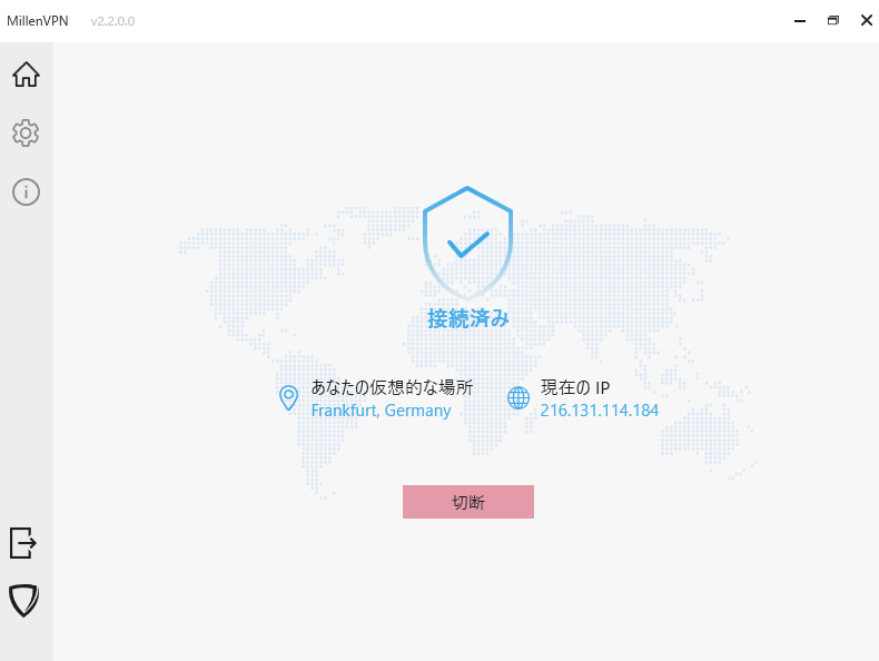 ③続いてMillenVPNを開き、日本以外のサーバーで接続