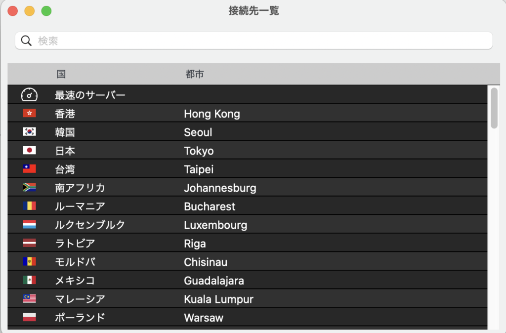 | アプリケーション起動時の動作設定 | 自動的に接続しない/最後に接続したサーバーに接続する/最速のサーバーに接続するなど、起動時の設定が可能です |