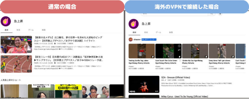 ②急上昇の画面に切り替え、日本のランキングが表示されていることを確認してください。