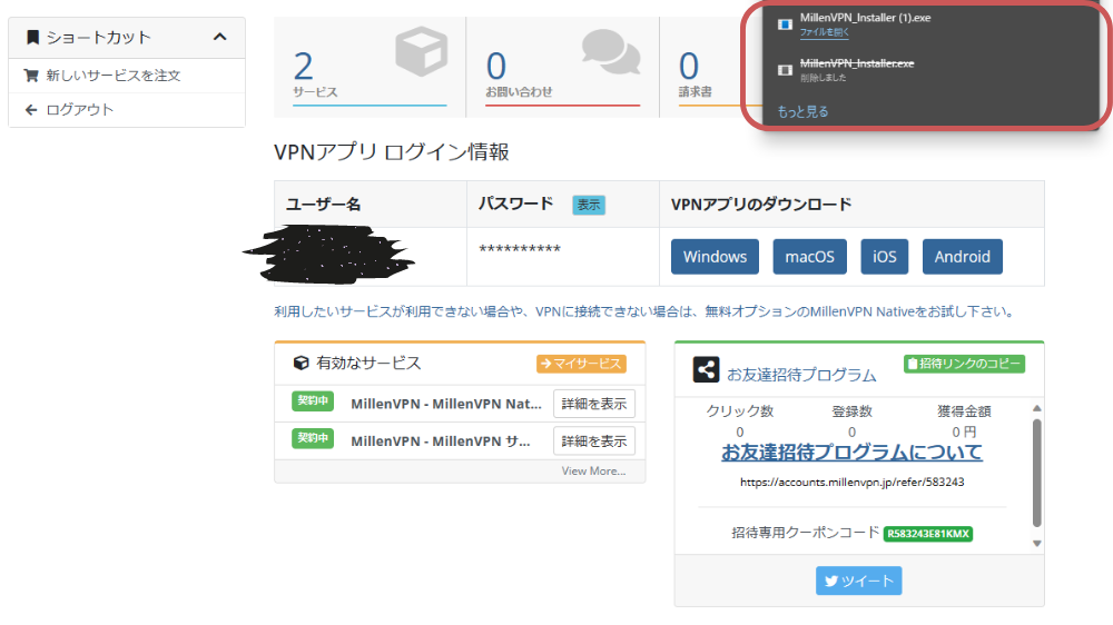 - MillenVPNの登録方法