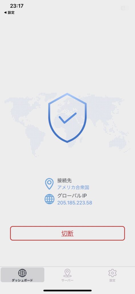 | キルスイッチ | オンにすると急にVPNが切断された際、本物のIPアドレスで通信することを防ぎます |