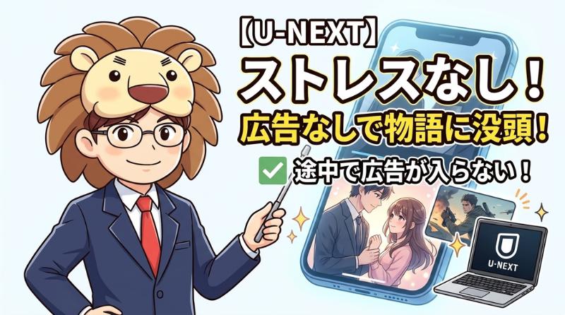 有料配信サービスであるU-NEXTの最大の利点は、動画の途中で広告が一切入らないことです!
