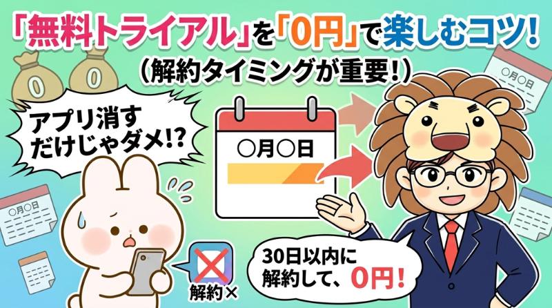 無料トライアルを利用して「無駄な嘘」を視聴する場合、解約の手続きを行うタイミングが重要です!