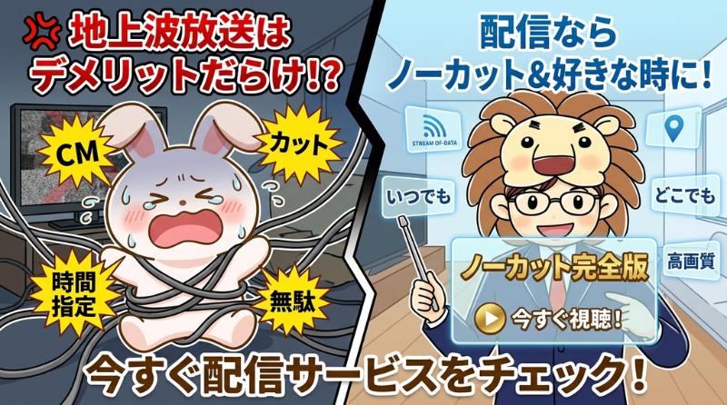 テレビ放送を待つよりも、配信サービスを利用してノーカットの完全版を好きなタイミングで視聴することをおすすめします!