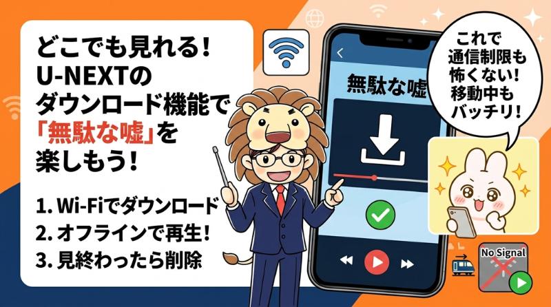 U-NEXTのアプリ版にはダウンロード機能(オフライン再生)が搭載されており、通信制限を気にせず視聴できます。