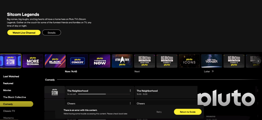 Pluto TVはオンデマンド配信に加えて、ストリーミングチャンネルでのライブ配信も豊富です。