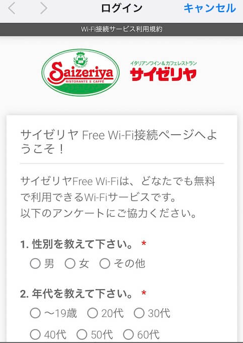 - サイゼリヤフリーWi-Fiの利用方法