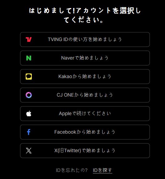 TVINGの会員登録自体は、SNSアカウントがあれば可能です。