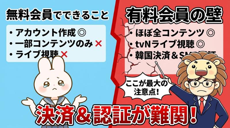 ただしTVINGの有料プランには韓国の決済手段が必要 - 韓国の電話番号がなくても無料コンテンツの視聴は可能
