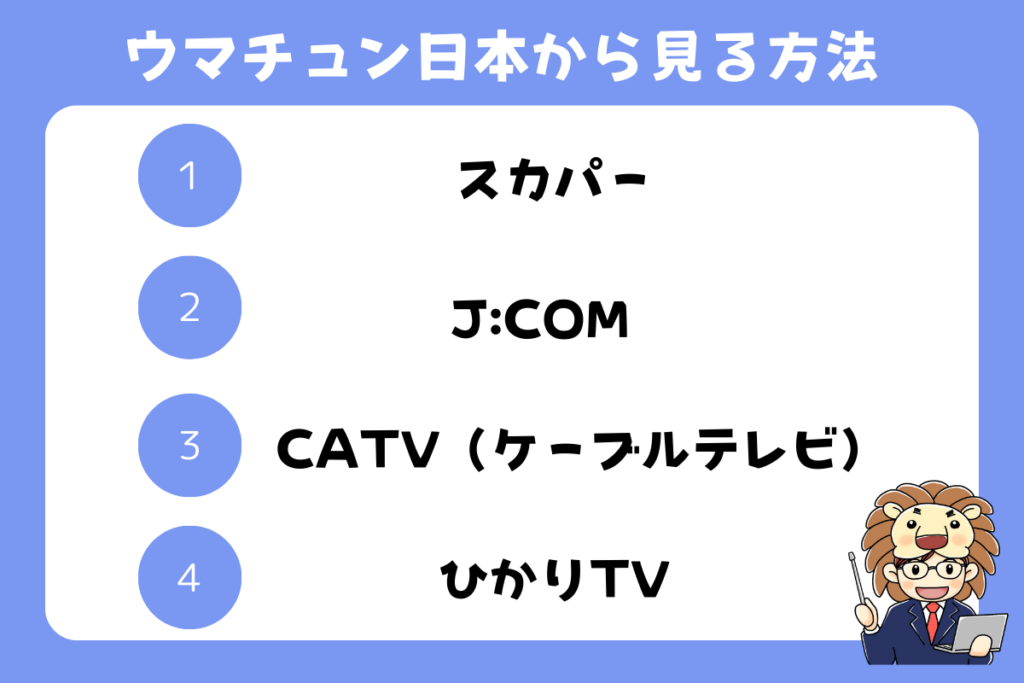 本記事では、ウマチュンを日本から視聴する方法やリアタイする方法について詳しく解説します。