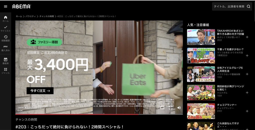 チャンスの時間とか、相席食堂もABEMA TVで見れるんだね!