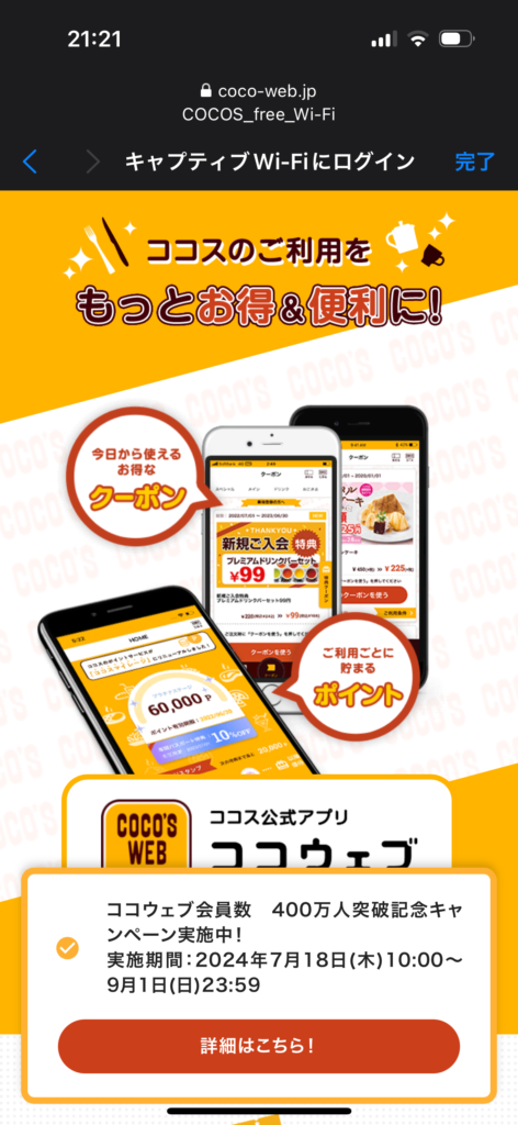 • ココスのフリーWi-Fi接続手順と注意点