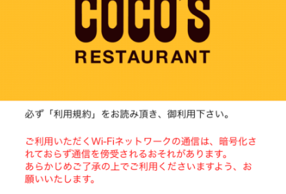 ココスのフリーWi-Fiは「暗号化されていない」Wi-Fi