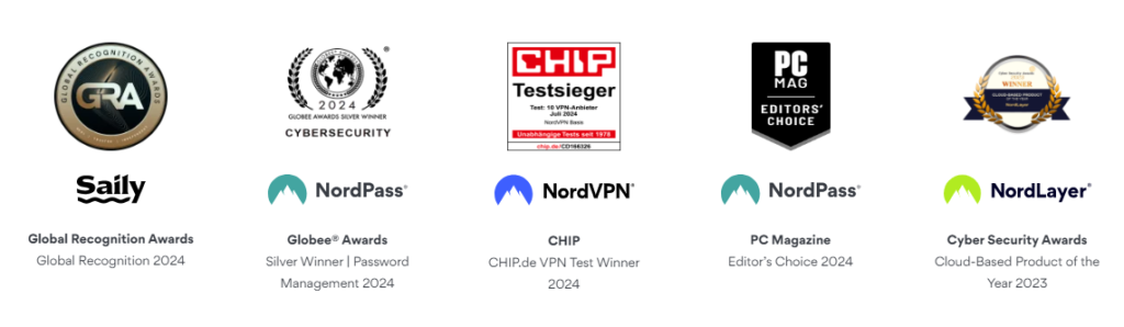 Nord SecurityはNordVPN以外にもプロダクトを複数出しており、下記のような様々な表彰を受けている安心できる企業です!