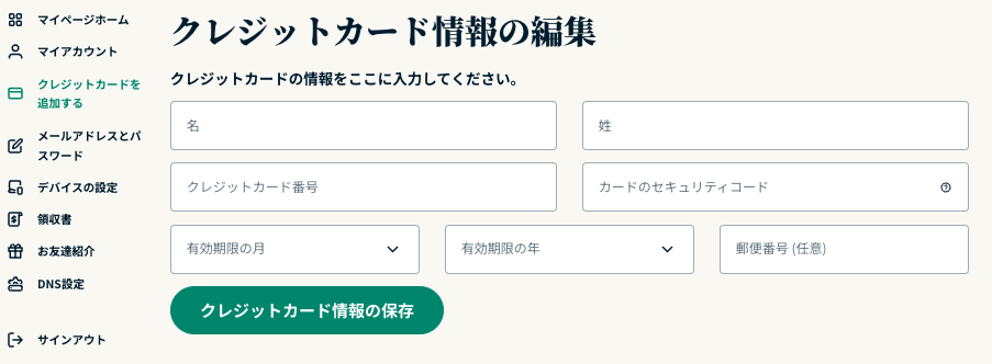 • カード番号、名前、住所などの個人情報登録は不要