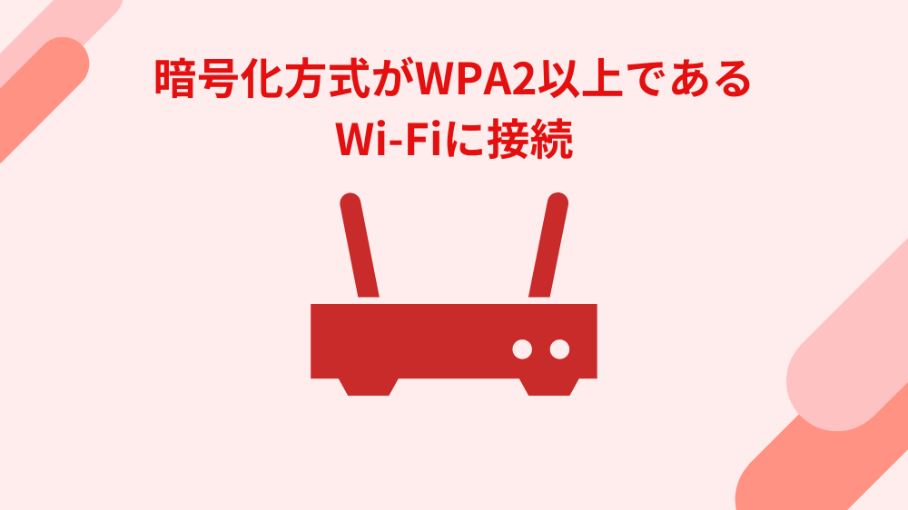 - 暗号化方式がWPA2以上であるWi-Fiに接続