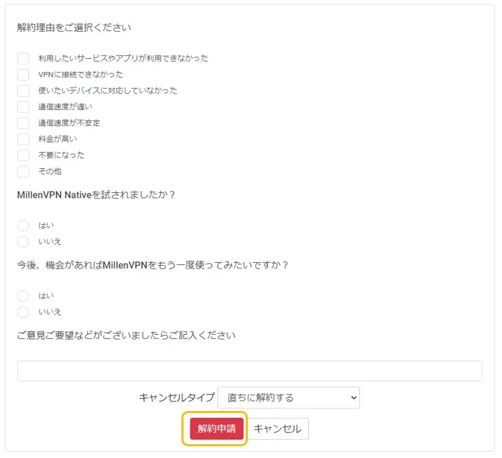 【安心】MillenVPNの解約手続きはカンタンとの評判多数