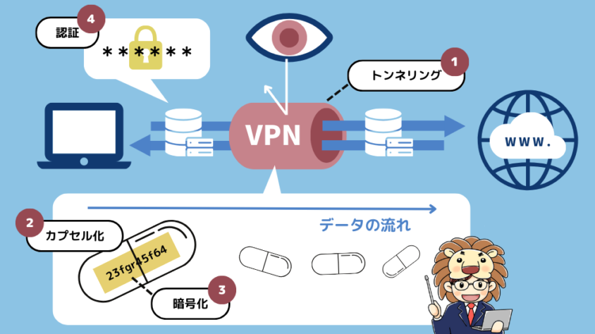 VPNとは「インターネット上に専用のトンネルを作って、別の国からアクセスしているように見せかける技術」です。