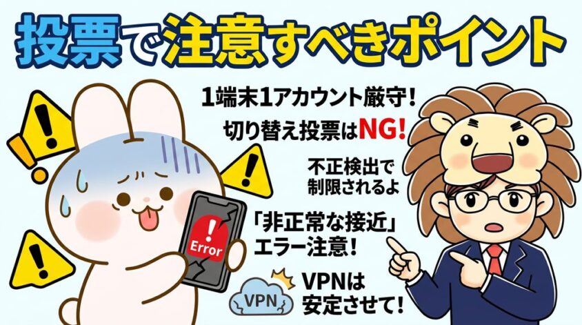 投票やPlus LIVEに参加する際は、VPN接続を維持したまま利用してくださいね。