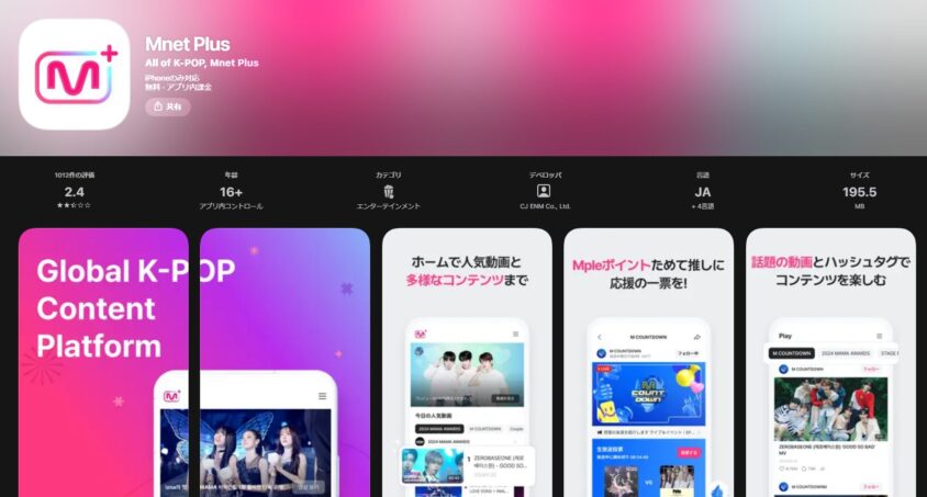 Mnet Plusアプリは日本のApp Store / Google Playからダウンロード可能です。