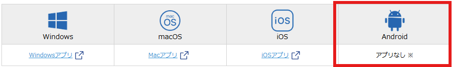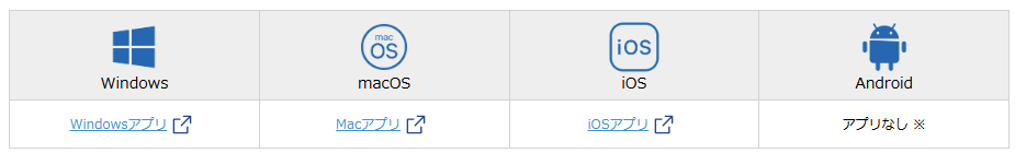 | 対応OS | Windows macOS iOS(iPhone、iPad) Android |