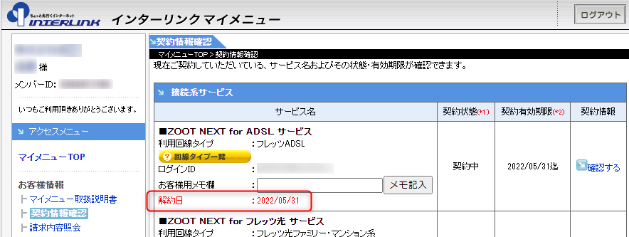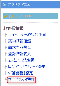 また、マイメニューから解約手続きが正常に行えない場合は、サービス解約シートにて解約手続きを進めることも可能です。