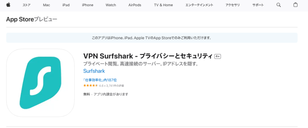 ②App StoreからSurfsharkをサブスクする場合の支払い方法