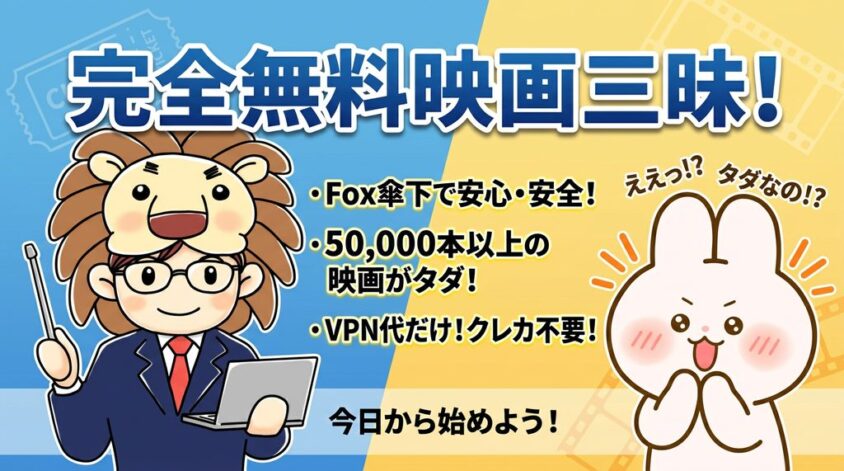 でもご安心ください。TubiはFox Corporation(あの20世紀FOXの親会社)が運営する、完全に合法な無料動画配信サービスです!