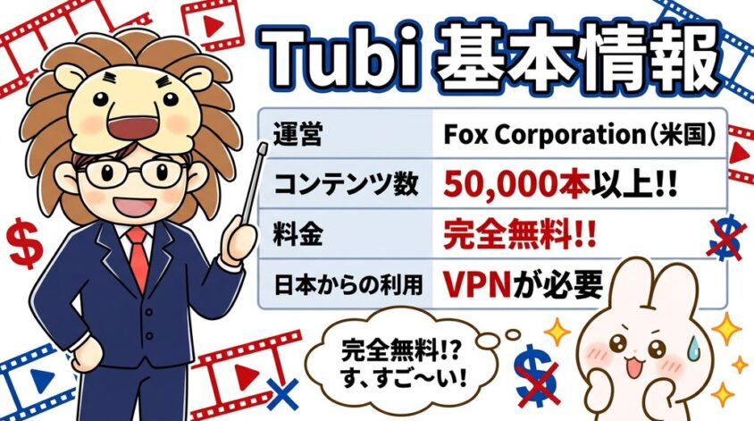 Tubi(トゥビ)は、Fox Corporationが運営する完全無料の広告付き動画配信(AVOD)サービスです。