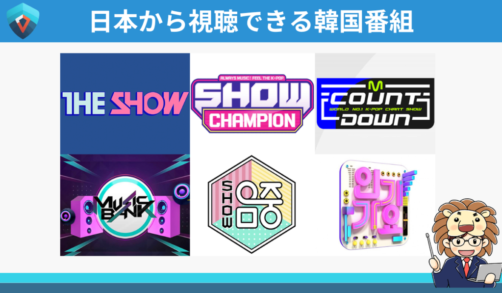 たとえば韓国の音楽番組などを例に取ると、下記の表は全て視聴可能ですよ!