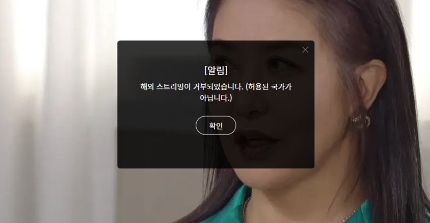 実際に日本からWavveの動画を視聴しようとすると以下の画像のような「海外ストリーミングが拒否されました。(許可された国ではありません。)」と表示されてしまうため、利用できないことが分かります。